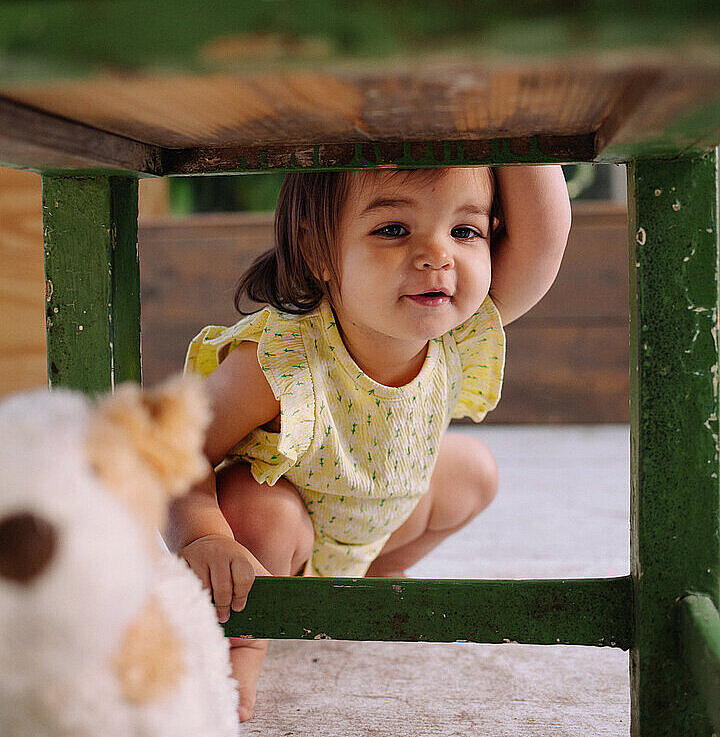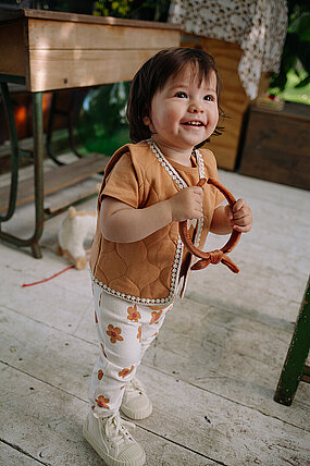 Krabbeln, spielen, klettern und ganz tapfer die ersten Schritte machen: Es kommt eine Zeit, in der das Kind beginnt, die Welt immer mehr zu entdecken. Manchmal sehr vorsichtig, manchmal ganz mutig, aber fast immer mit einem breiten Lächeln im Gesicht. Fallen, aufstehen und erneut versuchen.